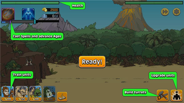战争进化史2是一款横版卡通风格的策略战争手游,玩法很上头。游戏从石器时代开打,你得一边派兵守卫基地,一边搞发展、升科技。攒金币、升级兵种,推动你的文明从原始部落一路进化到未来科技时代。游戏里有超多兵种和炮塔能解锁使用,操作简单,就是派兵打仗,打倒了敌人就能赚金币。你需要在三条路线上合理分配兵力,扛住敌人的进攻,并最终推掉对面的老家才能赢。