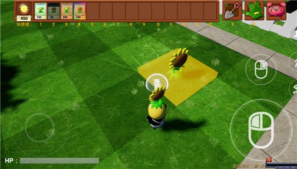 1. 在3D化的草地上种植植物,抵御从四面八方来袭的僵尸,守卫你的房子。