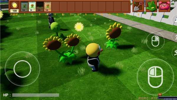 3. 直接控制游戏角色在场景中移动,亲手收集掉落的阳光,并选择位置种下植物。