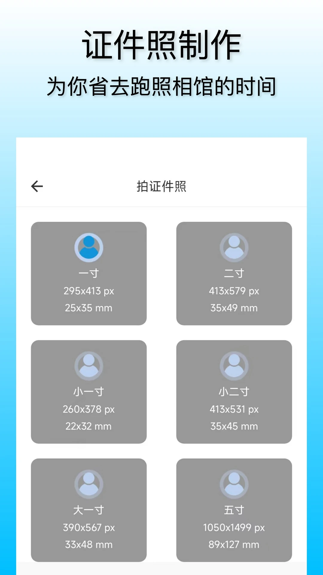 2. 做证件照非常方便,各种常用尺寸都预设好了,换背景、调格式都能搞定,再也不用专门跑去照相馆了。