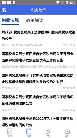 2. 功能非常齐全,从申报缴税到发票业务,还有最新政策查询和计算工具,基本上常见的税务需求它都能满足。