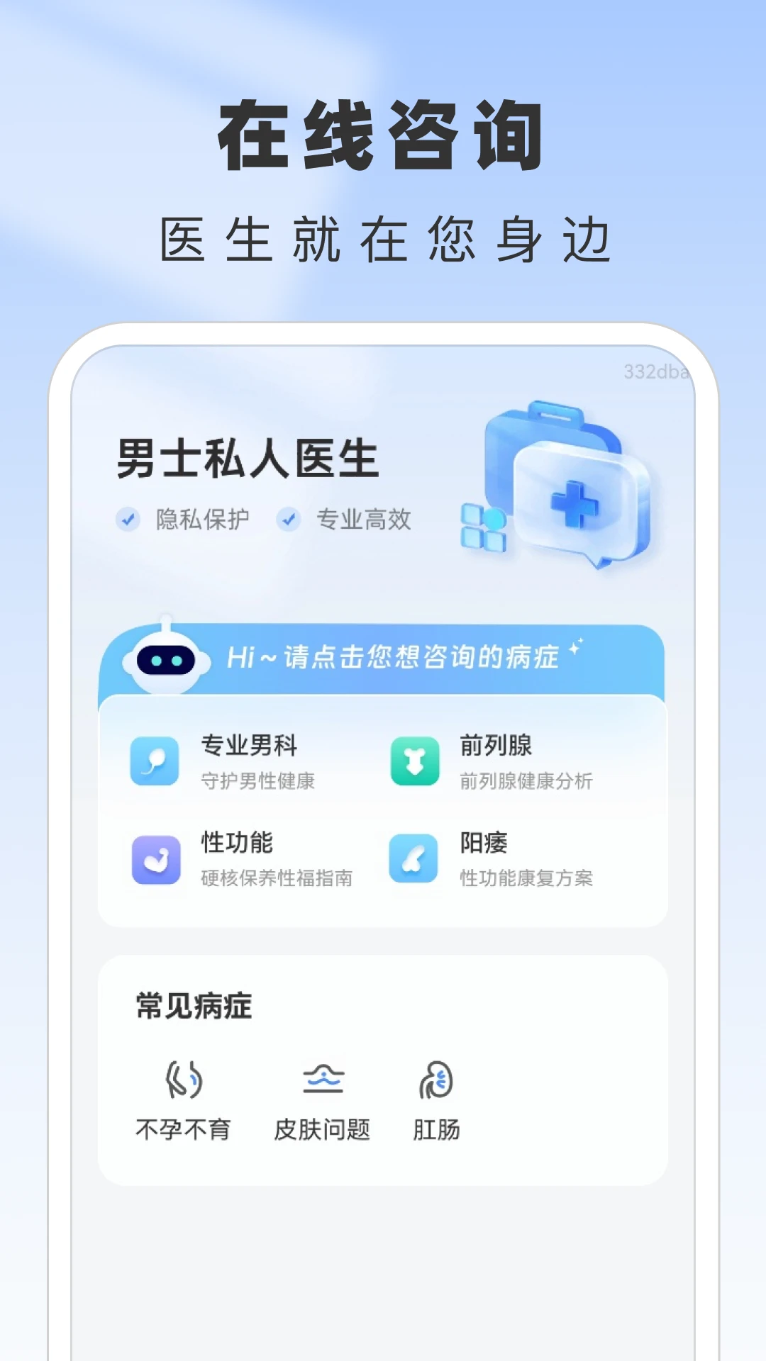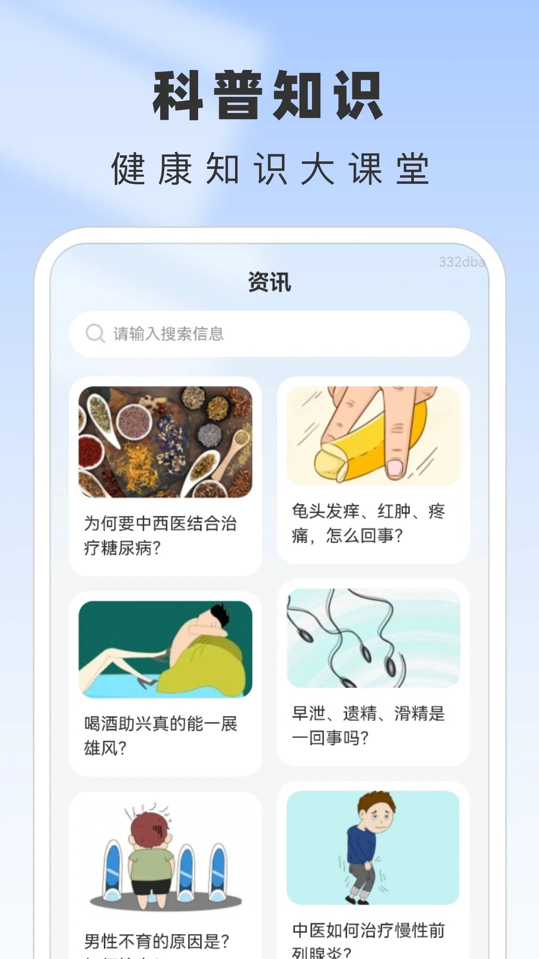 男士私人医生这款App确实抓住了男士们怕麻烦、对健康又不太上心的痛点。用它在线问医生真的很方便,有啥小问题不用硬扛,偷偷摸摸就咨询了。里面的预防知识和科普内容也挺实在,没事刷一刷,能学到不少。最关键的是所有记录都帮你存着,对自己健康状况能有个连贯的了解。对于想简单管理一下自己健康的哥们儿来说,算是个靠谱又省事的小工具。